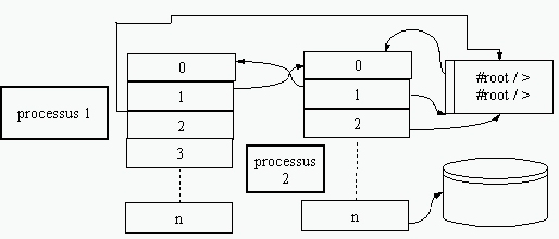 Or on peut modifier cette table grace aux instructions dup ou dup2, procedant ainsi a une redirection(creation du tube grace a pipe). Sous UNIX chaque processus possede une table de fichier pointant vers les fichier qu'il utilise.