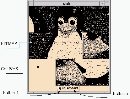 Dans la boucle lisant les retours de wish,si on lit 255 alors on "restart", sinon on test le deplacement. Et voila le tour est joue. On peut faire de meme avec les autres langages comme pascal ( peut etre ), caml ( sur ), lisp ,ada ...